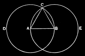 With centre A and distance AB let the circle BCD be described; [I.post.3] again, with centre B and distance BA let the circle ACE be described; [I.post.3] and from the point C, in which the circles cut one another, to the points A, B let the straight lines CA, CB be joined. [I.post.1]
