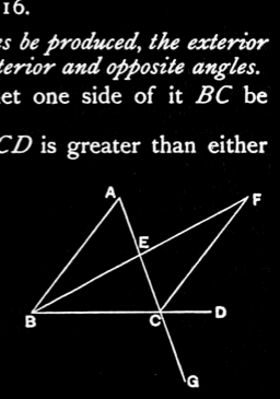 Similarly also, if BC be bisected, the angle BCG, that is, the angle ACD [I.15], can be proved greater than the angle ABC as well.