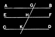 Then, since the straight line GK has fallen on the parallel straight lines AB, EF, the angle AGK is equal to the angle GHF. [I.29]