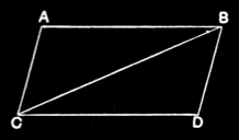 For, since AB is equal to CD, and BC is common, the two sides AB, BC are equal to the two sides DC, CB respectively; and the angle ABC is equal to the angle BCD; therefore the base AC is also equal to DB, and the triangle ABC is equal to the triangle DCB. [I.4]