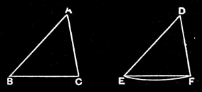 Again, AB coinciding with DE, the straight line AC will also coincide with DF, because the angle BAC is equal to the angle EDF; hence the point C will also coincide with the point F, because AC is again equal to DF.