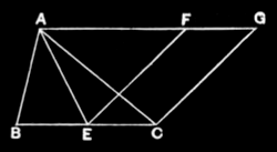 And, since BE is equal to EC, the triangle ABE is also equal to the triangle AEC, for they are on equal bases BE, EC and in the same parallels BC, AG; [I.38] therefore the triangle ABC is double of the triangle AEC.