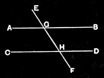If a straight line falling on two straight lines make the exterior angle equal to the interior and opposite angle on the same side, or the interior angles on the same side equal to two right angles, the straight lines will be parallel to one another.