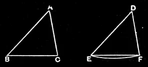 If two triangles have the two sides equal to two sides respectively, and have also the base equal to the base, they will also have the angles equal which are contained by the equal straight lines.