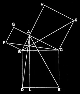 In right-angled triangles the square on the side subtending the right angle is equal to the squares on the sides containing the right angle.