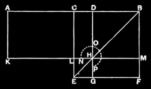 If a straight line be cut at random, the rectangle contained by the whole and one of the segments is equal to the rectangle contained by the segments and the square on the aforesaid segment.