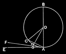 therefore there will not be any acute angle contained by straight lines which is greater than the angle contained by the straight line BA and the circumference CHA, nor yet any acute angle contained by straight lines which is less than the angle contained by the circumference CHA and the straight line AE.—