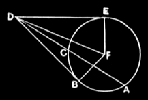Now, since DE touches the circle ABC, and DCA cuts it, the rectangle AD, DC is equal to the square on DE. [III.36]