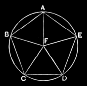 Similarly it can be proved that each of the straight lines FB, FA, FE is also equal to each of the straight lines FC, FD; therefore the five straight lines FA, FB, FC, FD, FE are equal to one another.