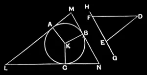 A rectilineal figure is said to be circumscribed about a circle, when each side of the circumscribed figure touches the circumference of the circle.