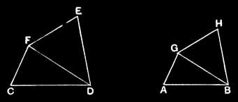 Let DF be joined, and on the straight line AB, and at the points A, B on it, let the angle GAB be constructed equal to the angle at C, and the angle ABG equal to the angle CDF. [I.23]