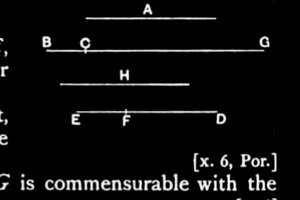 And each of the numbers DE, EF is square; therefore the square on BG has to the square on H the ratio which a square number has to a square number; therefore BG is commensurable in length with H. [X.9]