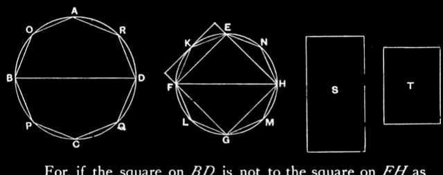 Let there be inscribed, also, in the circle ABCD the polygon AOBPCQDR similar to the polygon EKFLGMHN; therefore, as the square on BD is to the square on FH, so is the polygon AOBPCQDR to the polygon EKFLGMHN. [XII.1]