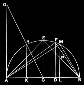 Next, let AG be drawn from the point A at right angles to the straight line AB, let AG be made equal to AB, let GC be joined, and from H let HK be drawn perpendicular to AB.