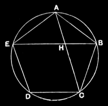 For in the equilateral and equiangular pentagon ABCDE let the straight lines AC, BE, cutting one another at the point H, subtend two angles taken in order, the angles at A, B; I say that each of them has been cut in extreme and mean ratio at the point H, and their greater segments are equal to the side of the pentagon.